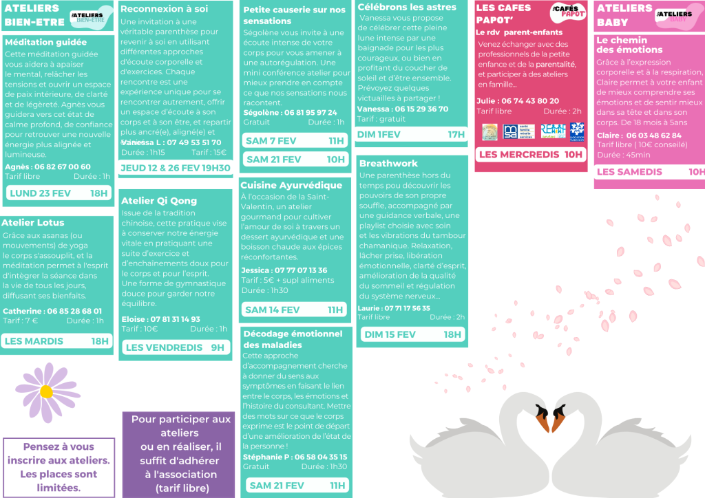 Agenda janvier 26 Téléchargez le programme de janvier 26 Agenda décembre 25 Téléchargez le programme de décembre 25 Agenda novembre 25 Téléchargez le programme de novembre 25 Cliquez-ici pour vous inscrire à une activité !
