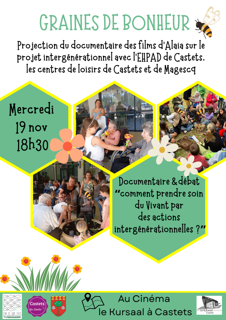 Dans le cadre de notre super projet avec l’EHPAD de Castets, les films d’Alaïa ont filmé toutes les rencontres entre les résidents de l’EHPAD, les bénévoles et les enfants des centres de loisirs de Magecsq et Castets.